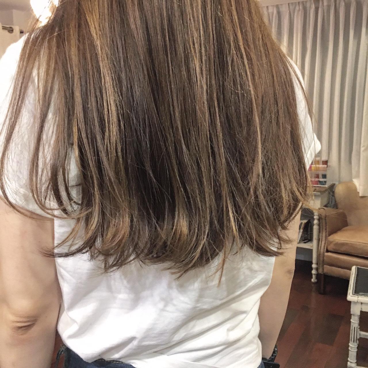 毛先が切れ毛でスカスカですね。この軽さは髪を傷んで見せます。